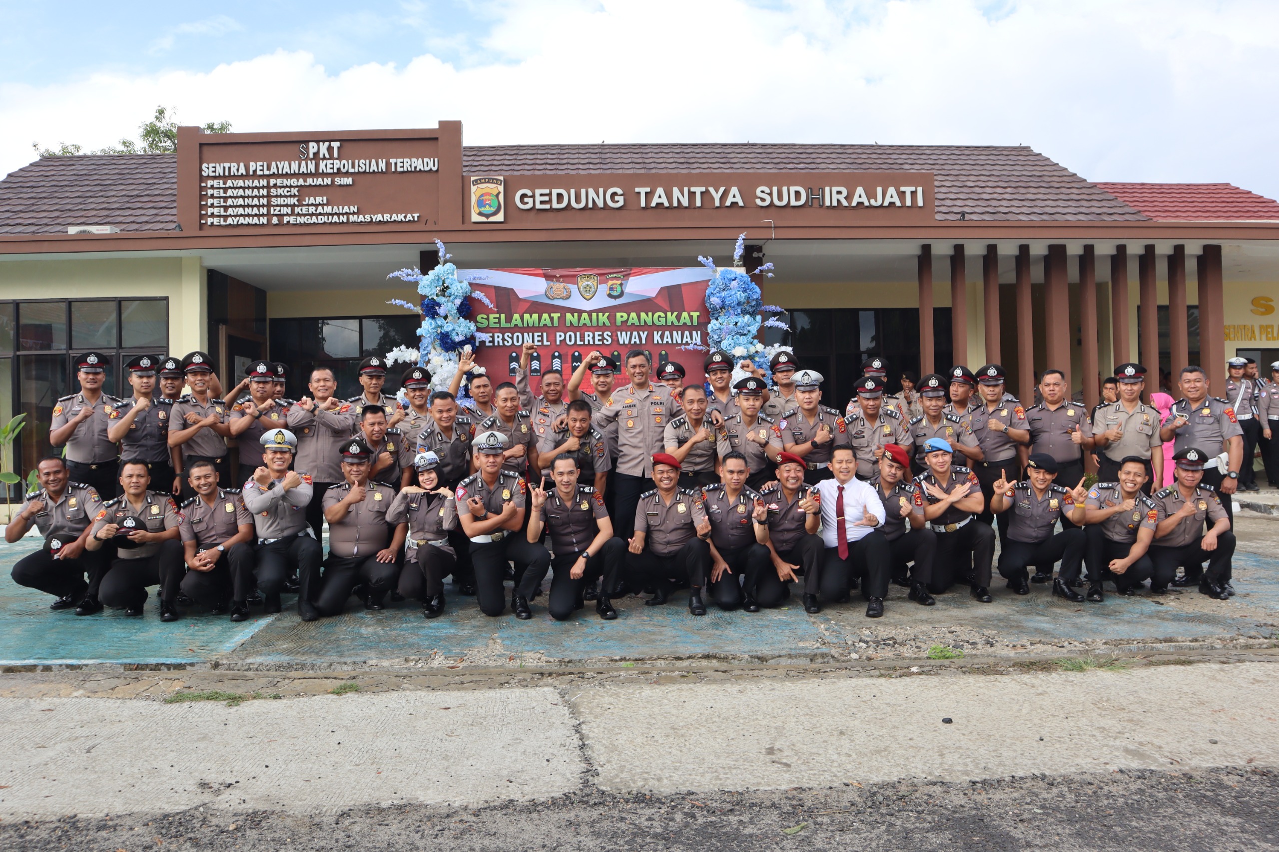 Kapolres Way Kanan mengucapkan selamat kepada yang telah memperoleh kenaikan pangkat dan semoga terus meningkatkan kinerjanya, jadikan setiap langkah dalam tugas, sebagai ladang amal ibadah yang di catat Tuhan Yang Maha Esa Allah Subhanahu Wa Ta’ala.