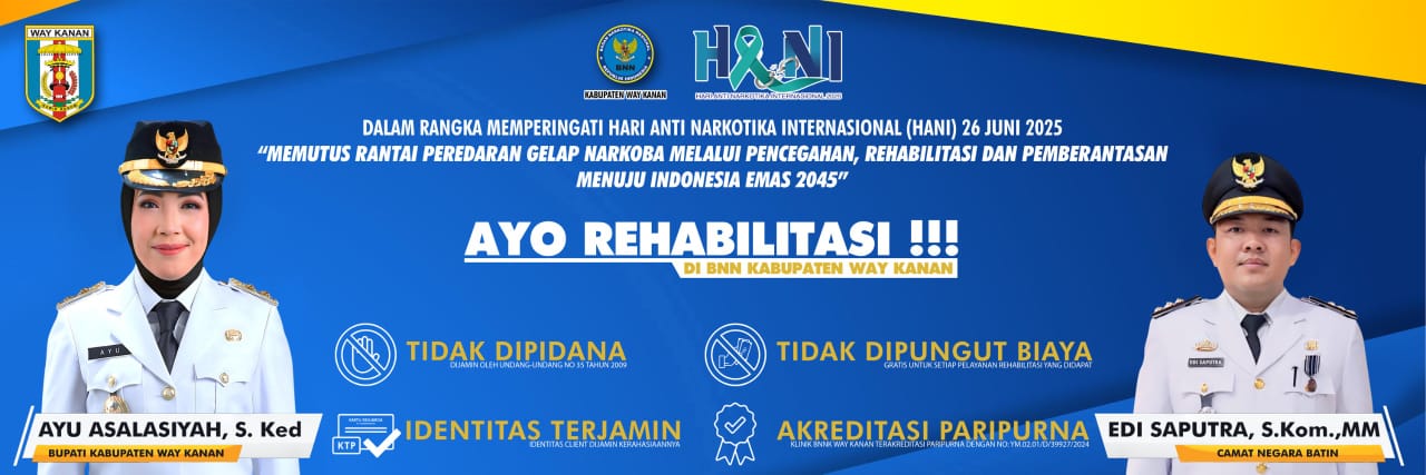 “Dengan adanya Program rehabilitasi ini diharapkan memberdayakan masyarakat dalam upaya pencegahan dan penanggulangan narkoba, menunjukkan pendekatan yang komprehensif. Saya berharap bagi pemerintahan kampung di wilayah kecamatan Negara Batin dalam hal ini kepala kampung yang merasa ada warganya yang terkena narkoba untuk bisa bersinergi Dengan BNN Way Kanan untuk dilakukan Rehab oleh BNN,” tuturnya.