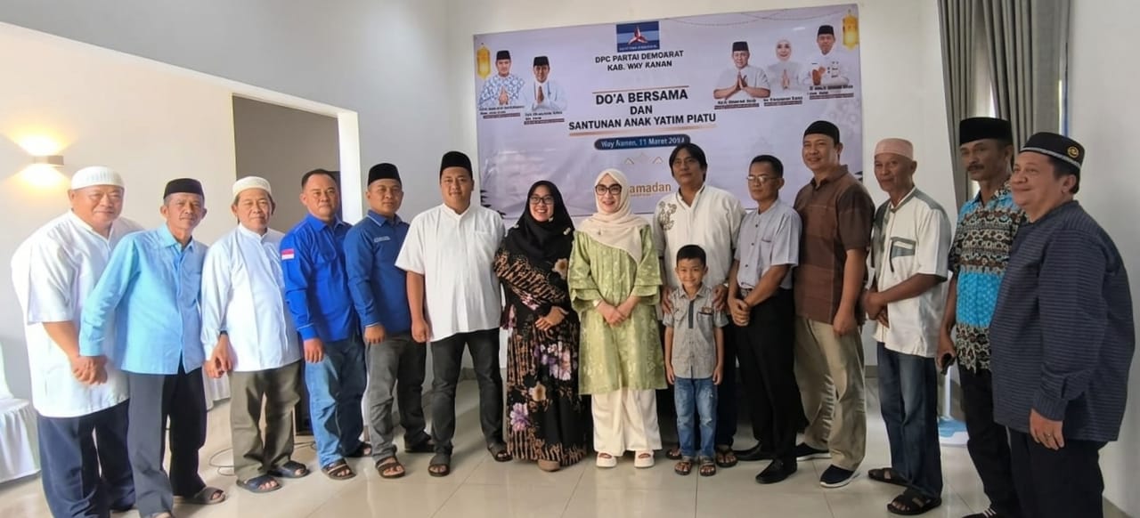 UMPU SEMENGUK (RWK) — Dewan Pimpinan Cabang (DPC) Partai Demokrat Kabupaten Way Kanan menggelar doa bersama sekaligus memberikan santunan kepada 100 anak yatim piatu di Kantor Sekretariat DPC Partai Demokrat, Kampung Bumi Ratu, Kecamatan Umpu Semenguk, Rabu (10/3/26).