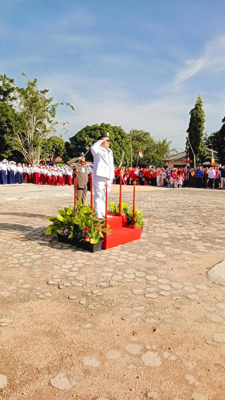 Radar Waykanan. Com, Negara Batin, -Camat Negara Batin Edi Saputra,S.Kom.,MM pimpin upacara peringatan Hari Kemerdekaan Republik Indonesia Ke-80 tahun 2025 dilapangan kecamatan Negara Batin.