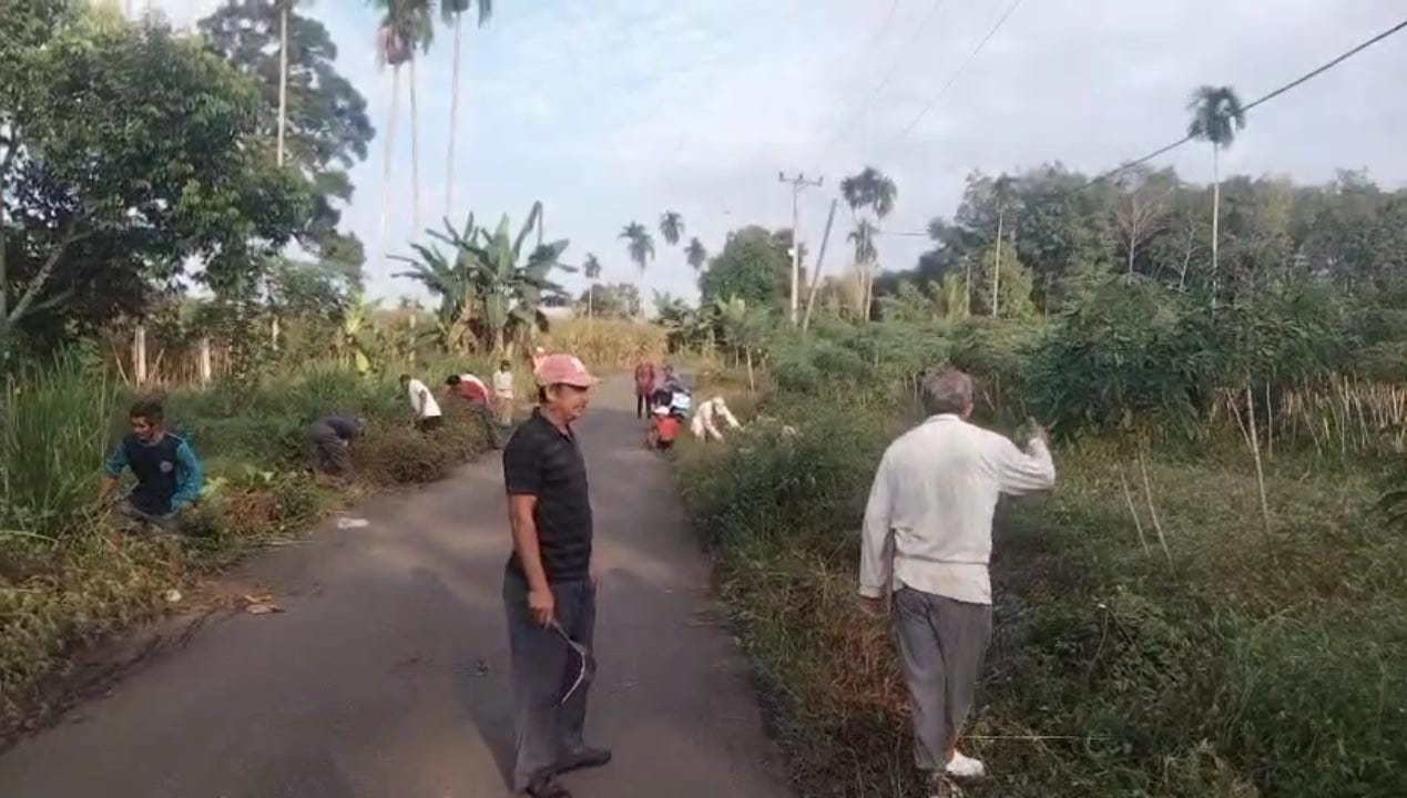 RADARWAYKANAN. COM, Gunung Labuhan- Ditengah Kesibukan masyarakat menikmati hari libur, H. Yanto mengerahkan warganya bergotong-royong membersihkan Jalan menuju Kantor Pelayanan Kecamatan yang masih dalam ruang lingkup Kampung Gunung Labuhan.
