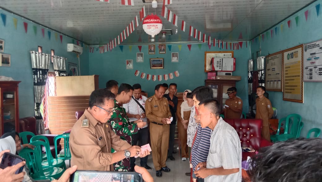 Turut hadir dalam acara, Camat Baradatu Pawit yang didampingi Sekretarisnya Roni Saputra, Bhabinsa, Bhabinkamtibmas, dan seluruh aparatur Kampung serta 19 KPM BLT-DD. (RWK/Kadarsyah).