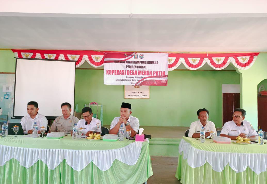 Radar Way Kanan.Com,Negara Batin, – Pemerintah kampung Gisting Jaya kecamatan Negara Batin resmi membentuk kepengurusan Koperasi Desa Merah Putih dalam sebuah musyawarah kampung yang digelar di Aula Kantor kampung Gisting Jaya. Kegiatan ini merupakan tindak lanjut dari Instruksi Presiden (Inpres) Nomor 9 Tahun 2025 tentang Pemberdayaan Ekonomi Desa Berbasis Koperasi.