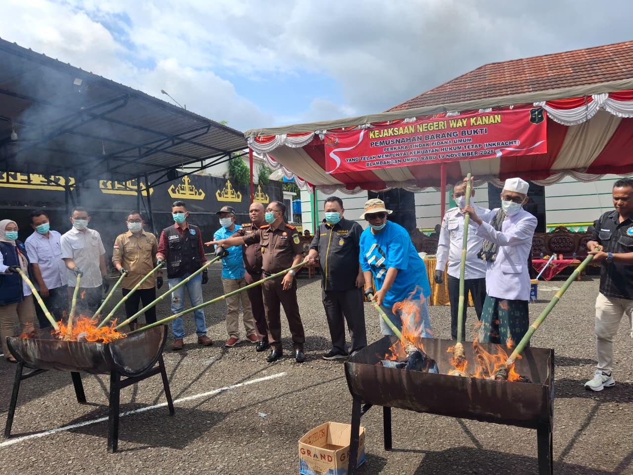 Blambangan Umpu.Radar Way Kanan.Com.- Kejaksaan Negeri Way Kanan menggelar Pemusnahan Barang Bukti Perkara Tindak Pidana Umum Yang Telah Mempunyai Kekuatan Hukum Tetap (Inkracht), Bertempat di Halaman Kantor Kejaksaan Negeri Way Kanan di Blambangan Umpu, Rabu (19/11).