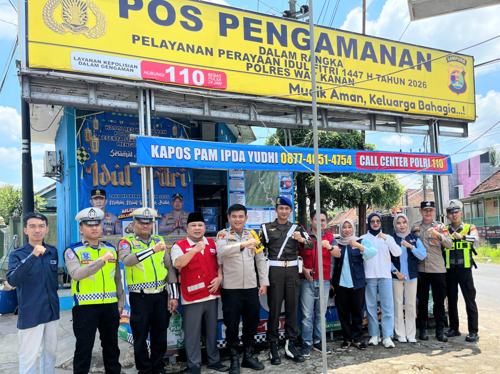 Di Posko Simpang Empat Kampung Negeri Baru, petugas tampak berjaga tanpa henti. Kepala Markas PMI Way Kanan, Yoni Aliestiadi, bersama Kapospam Ipda Yudhi W, SH, MH, turun langsung memastikan pelayanan berjalan optimal.