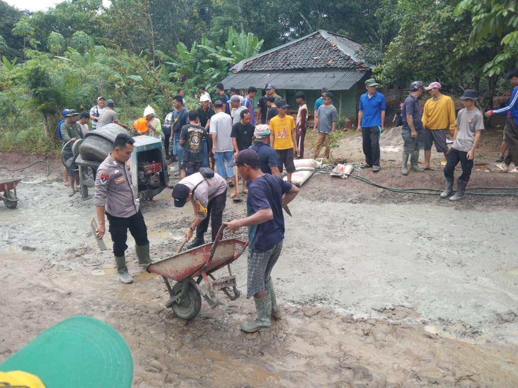 Minimalisir Laka Lantas, Polsek Kasui Gotong Royong Perbaiki Jalan di Talang Sali