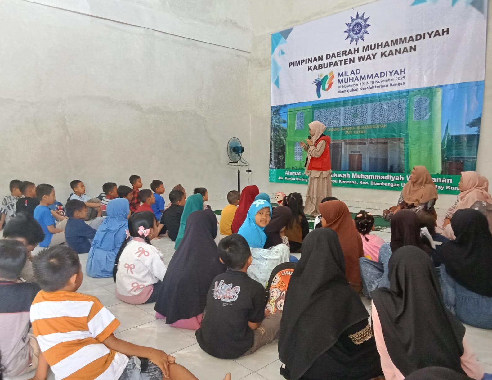 Blambangan Umpu.RadarWayKanan.Com,- Dalam rangka memperingati Milad Muhammadiyah ke-113 tahun 2025 Pimpinan daerah Muhammadiyah Way Kanan melaksanakan kegiatan pembacaan dongeng di Gedung Dakwah Way Kanan Ahad (29/11).