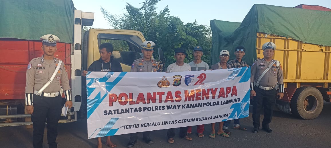 Blambangan Umpu, Radar Way Kansn.Com,- Dalam rangka mendukung Operasi Patuh Krakatau 2025 Satlantas Polres Way Kanan menggencarkan edukasi tertib berlalu lintas kepada para pengemudi lewat program Polantas Menyapa yang bertempat di depan Mako Polres Way Kanan. Senin (21/07/2025).