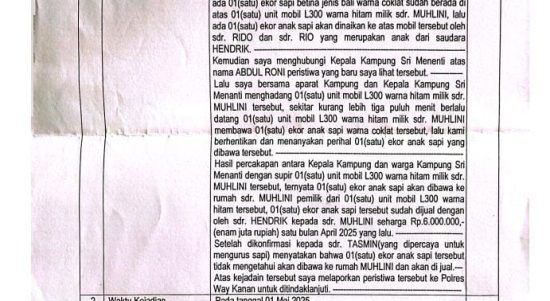 Masyarakat Kampung Sri Menanti Harapkan Pelaku Percobaan Pencurian Sapi Ketahanan Pangan Kampung di Tangkap