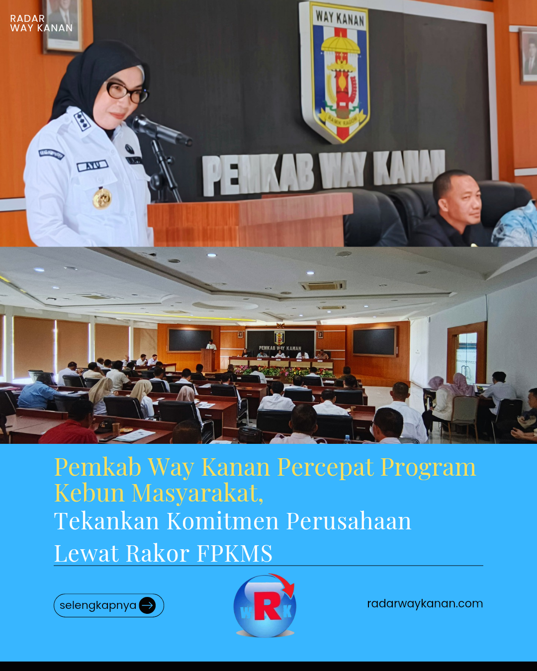 BLAMBANGAN UMPU (RWK) — Pemerintah Kabupaten Way Kanan terus mendorong percepatan realisasi program pembangunan kebun masyarakat sekitar melalui Rapat Koordinasi Tim Fasilitasi Pembangunan Kebun Masyarakat Sekitar (FPKMS). Agenda strategis tersebut kembali digelar pada Rabu (29/4/26) di Ruang Buay Pemuka Pengiran Tuha, kompleks perkantoran pemkab setempat.