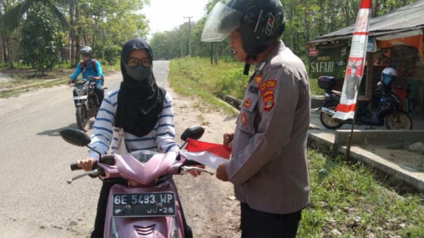 Dalam pembagian bendera merah putih tersebut sekaligus menjadi momen bagi personel untuk memberikan edukasi tertib berlalu lintas secara langsung kepada pengguna jalan yang dijumpai yakni pengendara truk, mobil dan pesepeda motor.