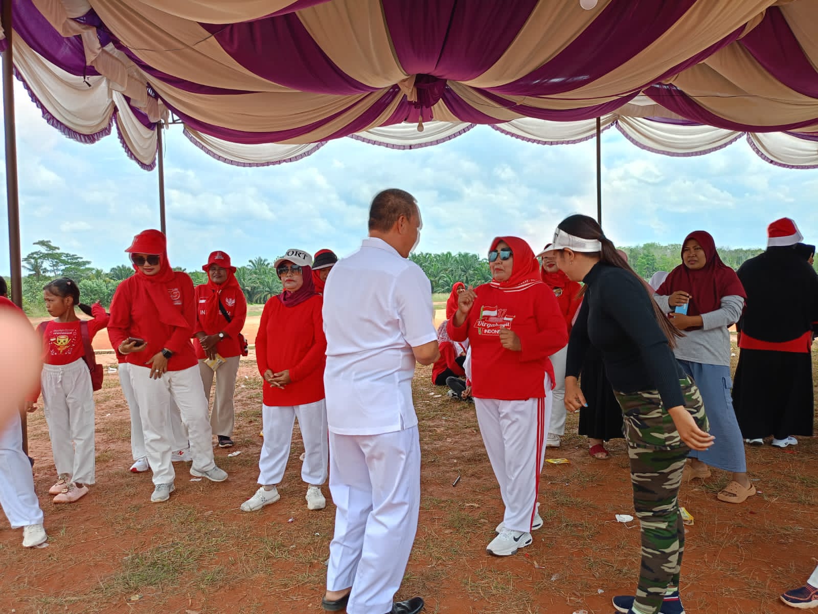Camat Negeri Agung Hepi Haryanto,SE., sangat gembira. Berjoget bersama emak-emak di Kampung Bandar Dalam.