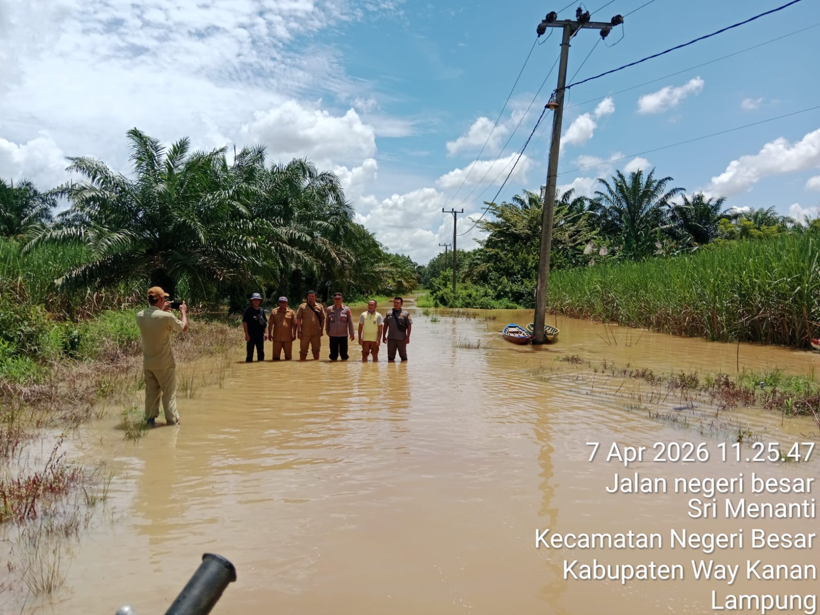 Negara Batin, -Menyikapi kondisi cuaca yang tidak menentu dan curah hujan yang masih terus mengguyur, pihak keamanan dan pemerintahan setempat tidak tinggal diam. Kapolsek Negara Batin bersama jajaran Uspika Kecamatan Negara Batin melakukan kunjungan kerja langsung ke Kampung Srimenanti untuk memantau situasi banjir luapan sungai waykanan yang melanda wilayah tersebut.