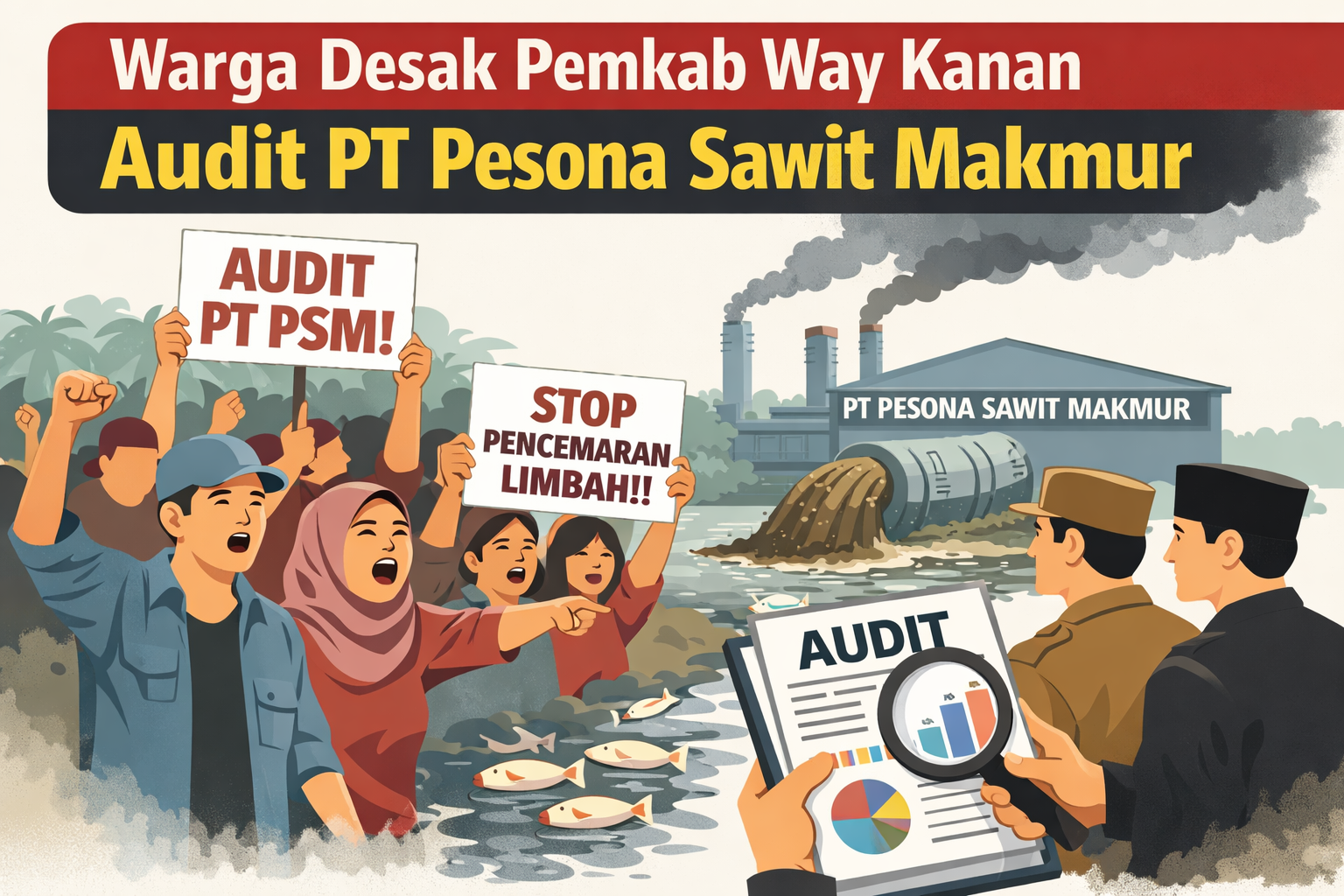 BLAMBANGAN UMPU (RWK) — Masyarakat di Kecamatan Blambangan Umpu, Kabupaten Way Kanan, semakin lantang menyuarakan desakan kepada pemerintah daerah untuk segera melakukan audit menyeluruh terhadap operasional PT Pesona Sawit Makmur (PSM). Perusahaan pengolahan kelapa sawit tersebut dinilai telah menimbulkan keresahan akibat dugaan berbagai persoalan legalitas.